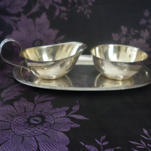 Silverset grädde och socker med bricka, 1490kr