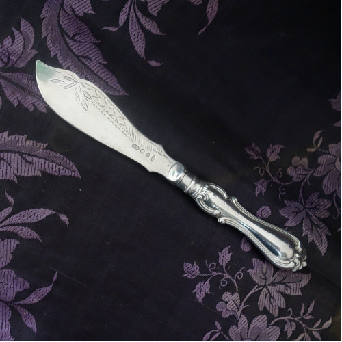 Gammal ostkniv I silver. Märkt: BB, utländska stämplar, EP